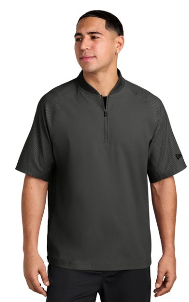 • Designed for warm-ups and batting practice or for fun at the batting cages, this water-repellent jacket has short sleeves for ease of movement. • 94/6 poly/spandex with durable water-repellent (DWR) finish • Heat transfer label for tag-free comfort • Rib knit neck • Embossed New Era neck taping • Locker loop • Raglan sleeves embossed with subtle Diamond Era pattern • Vislon zipper with easy-grip, textured New Era zipper pull • Silicone New Era flag logo on left sleeve • Right side seam zipper for easy on/off • Drop tail hem